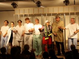 Bernhard Gerspach verkörperte gekonnt den Wärter Schulz, der als einziger die Situation begriff, dem aber niemand glaubte. Dass er am Schluss selbst in der Zelle landete, war nur folgerichtig. Immer wieder erheiternd die übertriebene Unterwürfigkeit gegenüber Vorgesetzten. Mitzuverfolgen, wie Christina Klohs als das „Dummchen“ Schwester Elsbeth mit der Desinfektionsdose bewaffnet, alles wegsprayte, was ihr in den Weg kam, war eine wahre Augenweide. Arrogant, überheblich, scharf kalkulierend und von dem Gedanken besessen, ein Mittel gegen Geisteskrankheiten zu finden, dies war die Rollenbeschreibung für Simone Müller als Ärztin, der sie bis ins Detail gerecht wurde. Ein Meisterwerk der Diagnose die Frage an die Insassen gerichtet: „Wie fühlen wir uns?“