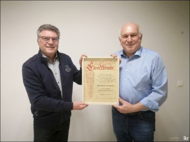 Bernhard Gerspach Bernhard Gerspach wird für 40 Jahre aktive Mitgliedschaft von Manfred Wenisch geehrt und zum Ehrenmitglied ernannt. |