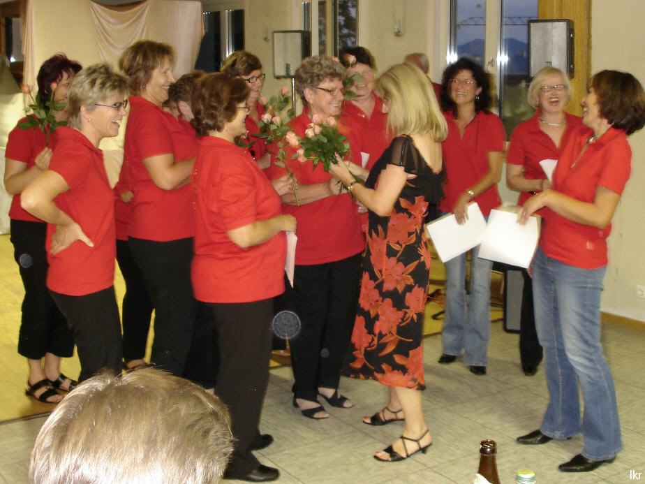 29.06.2007 Geburtstagsfeier Regina Matt Unsere Vorsitzende Gina feierte an diesem Tag ihren runden, 50. Geburtstag. Für uns Sängerinnen und Sänger Anlass, sie mal ordentlich in die Sonne zu stellen. Wir wurden nach allen Regeln der kulinarischen Kunst verwöhnt. Und wir revanchierten uns mit viele Sketche und Beiträge. |