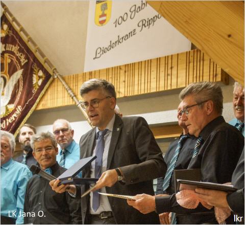 Landrat Dr. Martin Kistler überreichte unserem Chor diese besondere Auszeichnung. Sie ist in Deutschland die höchste Auszeichnung, die ein Chor erlangen kann.