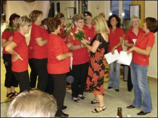 29.06.2007 Geburtstagsfeier Regina Matt Unsere Vorsitzende Gina feierte an diesem Tag ihren runden, 50. Geburtstag. Für uns Sängerinnen und Sänger Anlass, sie mal ordentlich in die Sonne zu stellen. Wir wurden nach allen Regeln der kulinarischen Kunst verwöhnt. Und wir revanchierten uns mit viele Sketche und Beiträge. |