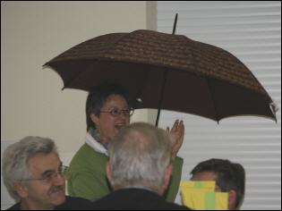 Treffpunkt vor dem Rathaus unterm Regenschirm... |