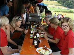 27. Juni 2009 Zusammen singen aber auch zusammen sein ist Ziel und Zweck unseres Chores. So trafen wir uns zum traditionellen Grillfest auf dem Sportplatz. Sängerinnen und Sänger steuerten verschiedene Bunte Salate bei und unser Vereinswirt Dieter Hertwig oblag der Grill-Organisation mit saftigen Steaks und leckerem Lachs. Natürlich wurde auch gesungen, auch Seemannslieder wobei unser Chorleiter Hubert Alznauer das Schifferklavier gekonnt hantierte… Ein geselliger Anlass, auf dem wir uns immer wieder freuen. (Fotos: Christine Gehr)