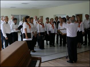 9. Mai 2009 Unsere Sängerin lud, wie sie sagte, „ihre liebste Freunde“ im Gemeindesaal um dort ihren runden Geburtstag zu feiern. Auch wir Sängerinnen und Sänger waren fast vollzählig gekommen um unsere Sopranistin zu gratulieren, mit ihr und ihre Liebsten zu feiern und für sie zu singen. Kulinarisch wurden die Gäste von Erika verwöhnt die sich wiederum revanchierten mit musikalische Beiträge, lustige Aufführungen und viele Tanzrunden. Das Ergebnis: ein stimmungsvolles Fest und ein schöner und kurzweiliger Abend.
