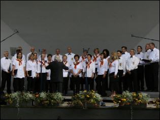 Nachdem am Vormittag 9 Kinder- und Jugendchöre des Hochrhein-Sängerbundes im "schönsten Schlosspark am Hochrhein" ein "Festival der Stimmen" gestaltet hatten, begann am Abend bei schönstem Wetter eine Konzertreihe der Chöre von der Chorgruppe Bad Säckingen - Hotzenwald. Auch wir sangen 3 Lieder - Heimweh - Marmor Stein und Eisen bricht, und - Danke für die Lieder