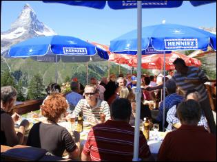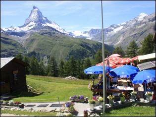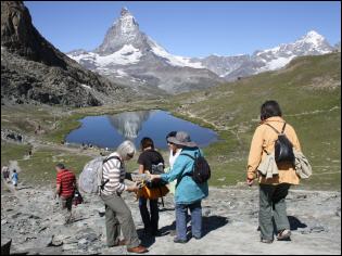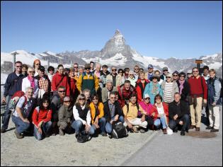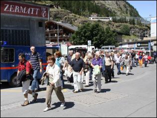 25. und 26. Juli 2009 „Ein traumhafter Vereinsausflug bei traumhaftem Wetter“. Mit diesen Worten begann unsere Vorsitzende Regina Matt ihren Rückblick auf unsere Chorreise ins Wallis und hatte damit im Kern eigentlich schon alles gesagt. Die ersten Regentropfen am Samstagmorgen verdunsteten mit dem überqueren der Schweizer Grenze und ein prächtiger Regenbogen kündigte die Sonne an, die uns ab diesem Moment auch nicht mehr im Stich ließ. Am Lac de la Gruyere genossen wir bei strahlend blauem Himmel unser Frühstück mit Schümlikaffee und Gipfeli. Danach fuhren wir weiter in das Walliser Weindorf Salgesch zu einer geführten Weindegustation. Manfred Wenisch – der Geburtstag hatte – spendierte den Sektempfang. Wir revanchierten uns dafür mit 3 Liedern und anschließend wurden uns verschiedene Weine und traditionelle Walliser Platten serviert mit ein wenig Brot… Weiter fuhren wir mit dem Bus an der Rhone entlang bis Visp und dann der Vispa entlang Richtung Zermatt. Es war eine imposante Fahrt durch das Nikolaital entlang des gewaltigen und phantastischen Gebirgsweltpanoramas bis nach Täsch. Dort standen Taxis bereit die uns ins 22 Grad warme Autofreie Zermatt am Fusse des Matterhorns brachten. In Zermatt ging es dann zu Fuss zum 4-Sterne-Hotel Alex. Manfred Wassmer (Manni), unser Sänger und Reiseleiter, traf auf „alte“ Bekannte, hatte er doch viele Jahre in Zermatt gearbeitet. „Schau da, alles meine Fans“ rief er einem ehemaligen Kollegen zu. Das Hotel Alex war Spitzenklasse. Schöne Zimmer, freundliches Personal, es stimmte einfach alles. Wir liefen durch das touristische Städtchen, erlebten die Touristenattraktion „Geissenkehr“ mit Schwarzhalsziegen, tranken etwas Erfrischendes oder schwammen im Hoteleigenen Pool. Vor dem Abendessen im Hotel trafen wir uns zum Apéro und anschließend wurde im unterirdischen Speisesaal ein üppiges Diner serviert. Der Neu-Erbaute Weinkeller ist ein Schmuckstück. Die Hotel-Gouvernante führte uns in diesen kühlen Raum mit seinen vielen verschiedenen Weine. Der Abend verbrachten wir auf unterschiedlichste Weise: wandernd durch das Städtchen, im Pool oder in der Sauna oder auf dem besten Platz… an der Theke.