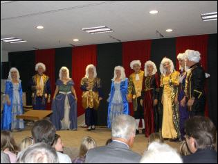 Am 3. Oktober 2009 fand unser Konzert mit dem Thema Vom Swinging Barock zu den Dreißigern im Rippolinger Gemeindesaal statt. Es war ein Konzert mit vielen Höhepunkten, mit vielen Facetten, mit vielen Überraschungen sowohl fürs Ohr wie für die Augen. Aber der Reihe nach: Die ersten Lieder (Wohlauf In Gottes Schöne Welt, Kein Schöner Land und Wenn Alle Brünnlein Fliessen) machten uns richtig Spaß und wurden vom Publikum mit viel Beifall belohnt. Danach wurde unser Sänger Bruno Huber für 40 Sängerjahre geehrt. Seit seinem 15. Lebensjahr singt er im Liederkranz mit. Viel Herzblut spendet Bruno unserem Chor immer wieder; nicht nur als leidenschaftlicher Sänger oder Theaterspieler sondern auch als vielseitig begabter Freund mit handwerklichem Geschick. Er bekam aus den Händen des Präsidenten des Hochrheinsängerbundes, Josef Brogle, die goldene Ehrennadel und Urkunde des Badischen Chorverbandes. Aufgrund seines außerordentlichen Engagements ernannte unsere Vorsitzende Regina Matt ihn zum Ehrenmitglied vom Liederkranz. Für ihn sangen wir anschließend sein Lieblingslied <Sierra Madre del Sur> aber beim Refrain drehte Bruno voll auf sodass seine kräftige Stimme uns alle übertönte … Mit zwei Schlagern der dreißiger Jahre (Für Eine Nacht Voller Seeligkeit und Oh, Donna Clara) setzten wir unser Programm fort. Neu waren die groß an der Wand projizierten Bilder (Dank an Markus Flum), passend zum jeweiligen Lied. Danach wurde ein lang gehegter Wunsch Wirklichkeit: der Präsident Josef Brogle besiegelte die musikalische Patenschaft zwischen dem Liederkranz und der Josef-Anton-Sickinger-Grundschule in Rippolingen. Sowohl unsere Vorsitzende Regina Matt wie auch Rektor Hermann Merath erhielten die vom Kultusminister Helmut Rau unterschriebene Urkunde über diese Kooperation. Dass diese Einheit gerade am Tag der Deutschen Einheit bekräftigt wurde, war zwar Zufall aber – um in der Analogie zu bleiben – den freudigen Akteuren (gross und klein) steht eine hoffentlich fruchtbare Zusammenarbeit bevor. Anschließend sang der Grundschulchor der Josef-Anton-Sickinger Grundschule mit Schülern der letztjährigen und diesjährigen vierten Klasse Hits wie „Lollypop“ mit peppigen Texten unter der Leitung von Rektor Hermann Merath, begleitet von Steffen Wurster. Schon bald waren die fetzigen Rhythmen bei den Zuschauern gelandet, sie klatschten rhythmisch mit. Lang anhaltenden Applaus bewirkte eine Zugabe die die Kinder mit viel Elan und jugendlicher Frische vortrugen. Ein Highlight unseres Konzerts. Nach einer kurzen Pause in dem das Bühnenbild geändert wurde, trat der Projektchor auf. In Barocken Kostümen schritten die 3 Herren und 7 Damen auf die Bühne und verneigten sich dem Publikum, das nicht aufhörte zu applaudieren. Dabei hatten wir noch gar nicht angefangen zu singen. Die Überraschung war gelungen! Wir sangen 2 Lieder aus der Barockzeit: Swinging Anna Magdalena und Swing the Prelude. Es waren nicht nur die Kostüme (von der Perücke bis zu den weißen Kniestrümpfen) sondern auch die elegante Choreografie und die gut vorgetragene Melodien, die anschließend für tosenden Applaus sorgten. Nach der Pause, in der das Bühnenbild nochmals komplett zum Seegelbootdeck mit Masten, Reling, Leuchten, Tauen, Schiffsglocke und Rumfässer umgebaut wurde, traten die Sänger als Shanty-Chor auf. Als Seemann oder Pirat verkleidet sangen wir drei Lieder (Finster Ist Die Nacht, Sloop John B und Leise Kommt Die Nacht). Die Melancholie der Lieder ergriff das Publikum. Bei Dämmerlicht und einem Leuchtturm im Hintergrund wurde es ganz still im Saal. Umso größer war der donnernde Applaus danach. Eine gelungene Überraschung und weiterer Höhepunkt unseres Konzerts. Die Sängerinnen gesellten sich wieder dazu und wir sangen gemeinsam 4 bekannte Schlager: Heimweh, Marmor Stein Und Eisen Bricht, Der Mond Hält Seine Wacht und Danke Für Die Lieder. Das Finale bestritten wir alle zusammen: Sängerinnen und Sänger sowie Schülerinnen und Schüler mit dem Lied: Wir Sind Der Coolste Chor Der Welt. Ein feierlicher Schlusspunkt unseres Konzerts. Der lang anhaltende Applaus zu später Stunde war der Dank des zufriedenen Publikums. Und das tat gut! Und ist Ansporn zugleich. Denn: nach dem Konzert ist vor dem Konzert…