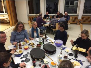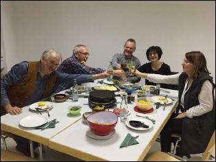 Am Samstag, 7. Januar 2017 (7.1.17) begrüsste Gina die Sängerinnen und Sänger sowie die Theatergruppe zu einem gemütlichen und geselligen Abend und gemeinsam wurde auf ein erfolgreiches neues Jahr 2017 angestossen. Beppo und sein Team hatten ein leckeres Raclette mit vielen Beilagen vorbereitet, und Rudi würzte das Ganze dann noch mit seinem lustigen Vortrag von Tucholsky „Ein Ehepaar erzählt einen Witz“. Ganz passend zum letzten Theaterstück gerät das Ehepaar beim Erzählen des Witzes in einen sich eskalierenden Konflikt (ohne Gemetzel), so dass letztlich Ausgang und Pointe der Phantasie der Zuhörer überlassen bleibt. Bis weit nach Mitternacht wurden neue Kontakte geknüpft, gefeiert und gelacht, es war ein wunderschöner und gemütlicher Vereinsjahresbeginn.