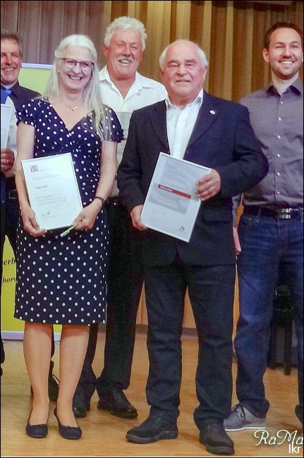 Vom Liederkranz waren das: Hubert Alznauer (40 Jahre Chorleiter), Martin Kramer (50 Jahre), Jan van den Eijkel (40 Jahre) und Regina Matt (25 Jahre) |