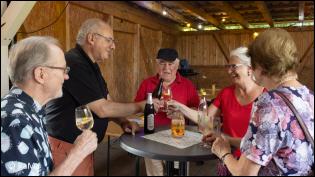 Aus dem vielfältigen Getränkeangebot heraus begeisterte ein Sommerdrink als Apero, zubereitet von Veronique und Manfred aus rotem Gutedel gemischt mit Tonic Water. Nach dem Abendessen sangen wir voller Elan aus unserem Liederrepertoire bekannte und von Hubert arrangierte Medleys. Dazu begleitete uns unser Dirigent auf seinem Akkordeon.