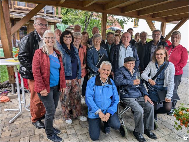 100. Geburtstag unseres Ehrenmitglieds Eugen Bausch Am 8. September 2024 feierte Eugen bei guter Gesundheit und bester geistiger Frische seinen einhundertsten Geburtstag. Eugens ausdrücklicher Wunsch war es seinen 100. Geburtstag exklusiv mit dem Gesangverein einen Tag nach dem familiären Fest zu feiern, was für uns eine besondere Ehre darstellt. Nachdem der Liederkranz vor einem Jahr selbst erst das 100-jährige Jubiläumsfest beging, stellte unser 1. Vorsitzender Manfred Wenisch bei seinen Glückwünschen freudig fest, dass es nun erstmals in der Vereinsgeschichte den hundertsten Geburtstag eines Mitglieds zu feiern gibt. Eugen Bausch trat 1947 als aktives Mitglied dem damaligen Männergesangverein bei. Im Verlauf der Jahre bekleidete er dann zahlreiche Vereinsämter und nach 25-jähriger Mitgliedschaft wurde ihm die silberne und nach 40-jähriger Mitgliedschaft die goldene Ehrennadel des Chorverbandes feierlich verliehen. Aufgrund dieser langjährigen aktiven Vereinszugehörigkeit wurde er 1983 zum Ehrenmitglied ernannt. Bis ins Jahr 2002, also 55 Jahre lang sang Eugen mit seiner schönen und tragenden Tenorstimme als herausragende Stütze mit uns im Chor. Gerne kamen zahlreiche aktive Sängerinnen und Sänger Eugens Einladung nach. Wir ließen uns natürlich diese Gelegenheit nicht nehmen ihm mit großer Begeisterung ein Ständchen zu bringen. Mit den Liedbeiträgen "Wir gratulieren", "Über den Wolken", "The Rose", "Amazing Grace" und "Freude und Freunde" bereiteten wir dem Jubilar und seinen engsten Angehörigen eine große Freude.