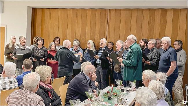 Der Liederkranz trug mit Liedbeiträgen zum gemütlichen Jahresabschluss der Rippolinger Senioren bei. Nach dem Auftritt des Nikolaus (unser Bass Thomas Gehr) sangen wir unter der bewährten Leitung von Hubert Alznauer folgende Lieder: * Geht ruft es von den Bergen * Hambani Kahle * Masithi he`s born * This little light of mine * Corramos corramos * Stille Nacht heilige Nacht Anschließend trug unsere Sopranistin Viola Mewes eine schöne, amüsante Geschichte in Reimform vor. Darin werden die Aufgaben und Erwartungen der Hausfrau in der Weihnachtszeit erzählt.