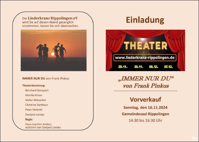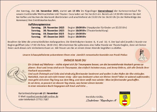 Vorverkauf: 16.11.2025 von 14:30 Uhr bis 16:30 Uhr im Rippolinger Gemeindesaal