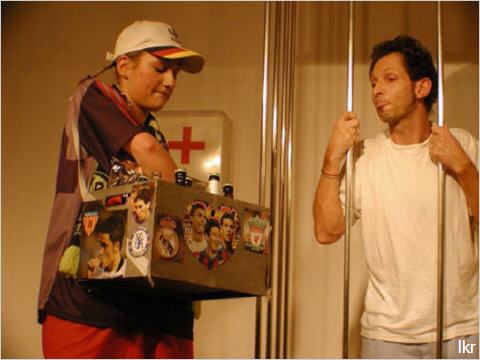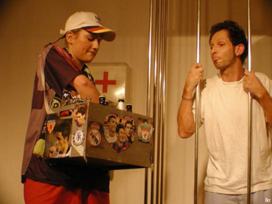 Plötzlich, wie aus dem nichts, erschien die Limo-Verkäuferin, eine Rolle die Patricia Kramer mit vollem Einsatz gekonnt spielte (sie war erst vor wenigen Tage eingesprungen für eine erkrankte Mitspielerin). Sie hatte sich „durch die Kanalisation vom Fußballstadion hierher verlaufen“ und wollte „Cola-Limo-Biehier“ verkaufen.