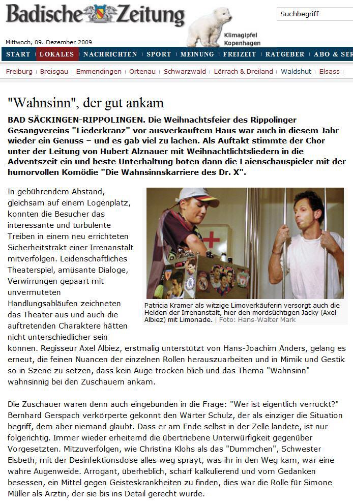Am 9. Dezember 2009 berichtete die Lokalpresse (Südkurier und Badische Zeitung):