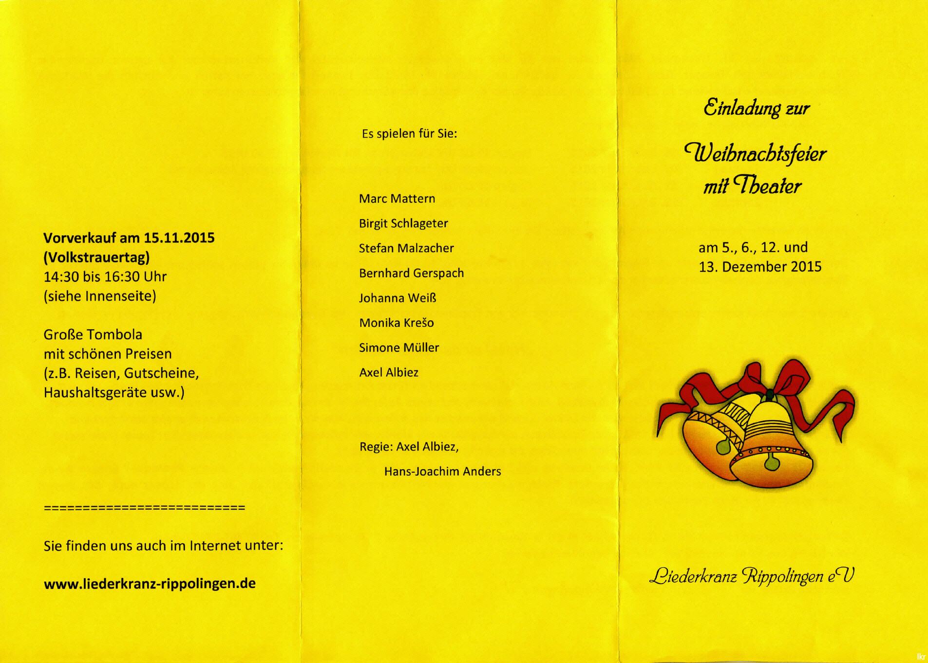 Die Laienschauspielgruppe 2015: Johanna Weiß, Monika Kreso, Marc Mattern, Birgit Schlageter, Stefan Malzacher, Bernhard Gerspach, Simone Müller. Regie: Axel Albiez, der ebenfalls selbst in eine Rolle schlüpfte, und Hans-Joachim Anders.